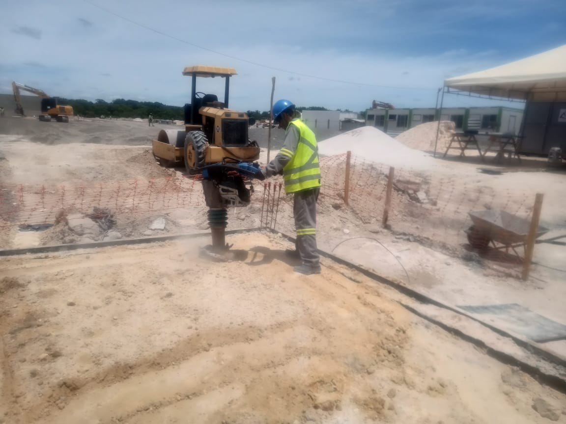 Na parte civil, são realizadas fundações, bases de concreto, canaletas, eletrodutos, drenagem, estruturas metálicas e preparação da malha de aterramento.